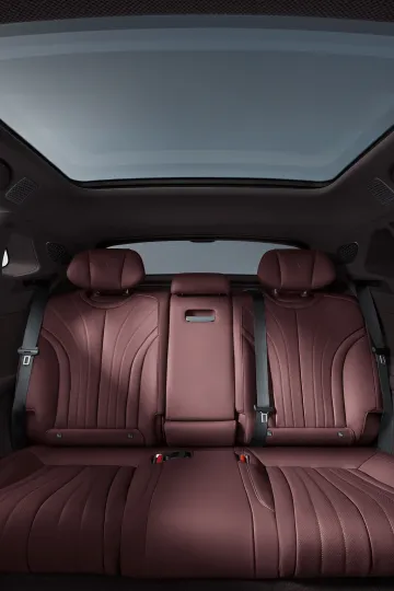 Bancos em couro Nappa com funções de massagem, ventilação e apoio estendido para as pernas oferecem um nível superior de relaxamento. Já o suporte lateral ativo mantém o motorista estável e confiante mesmo nas curvas mais intensas.